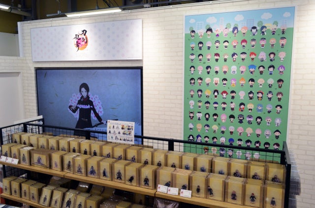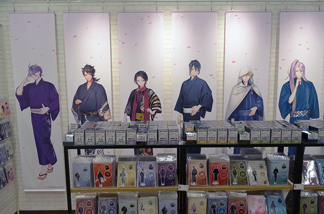 2025年1月14日にサービス開始から10周年を迎えたゲーム『刀剣乱舞ONLINE』。本作の商品が壁面にまでずらりと並んだ様子は壮観の一言!