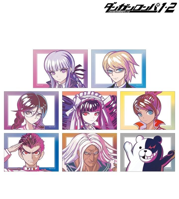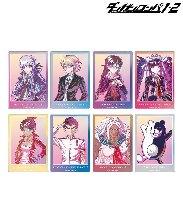 苗木誠、舞園さやか、桑田怜恩、山田一二三、大和田紋土、葉隠康比呂、江ノ島盾子、不二咲千尋を新たなタッチで魅力的に表現し、アクリルカードに仕上げました。
