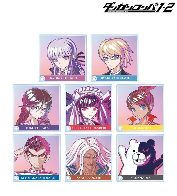 霧切響子、十神白夜、腐川冬子、セレスティア・ルーデンベルク、朝日奈葵、石丸清多夏、大神さくら、モノクマを新たなタッチで魅力的に表現し、手のひらサイズのアクリルパネルに仕上げました。