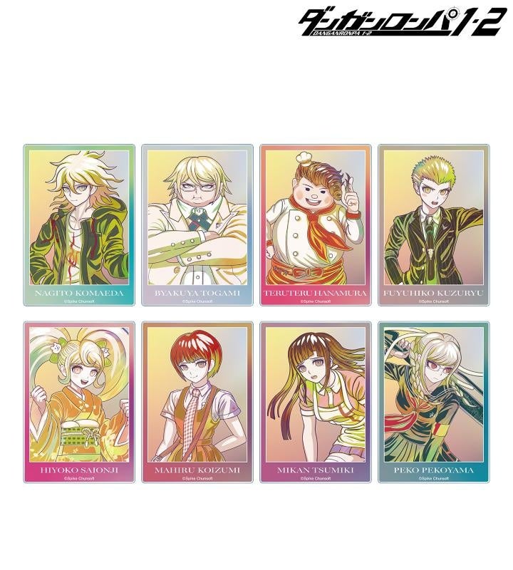 狛枝凪斗、十神白夜、花村輝々、九頭龍冬彦、西園寺日寄子、小泉真昼、罪木蜜柑、辺古山ペコを新たなタッチで魅力的に表現し、アクリルカードに仕上げました。