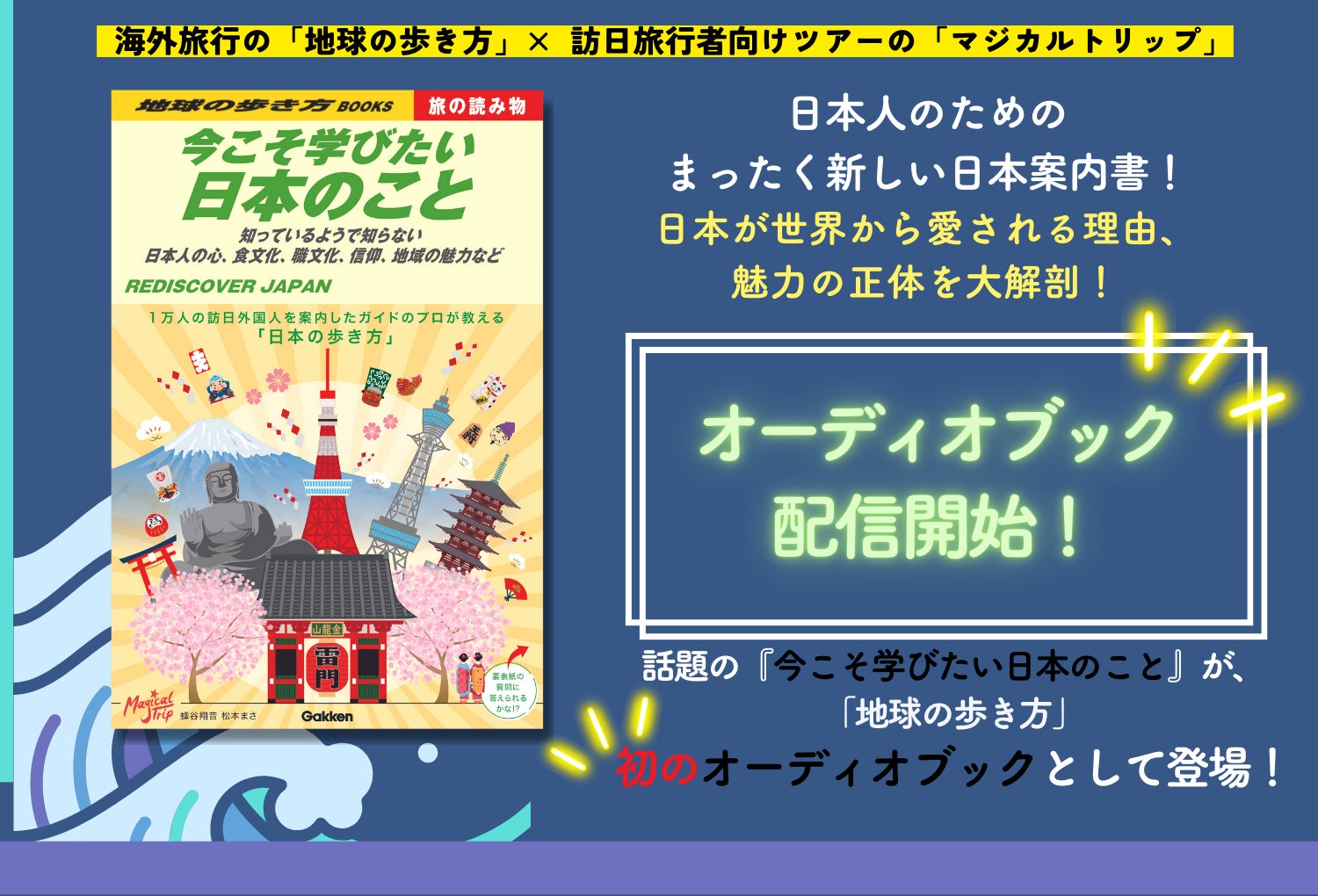 株式会社 学研ホールディングス(東京・品川/代表取締役社長:宮原博昭)のグループ会社、株式会社 地球の歩き方(東京・品川/代表取締役社長:新井邦弘)は2024年8月8日(木)に、『今こそ学びたい日本のこと~知っているようで知らない日本人の心、食文化、職文化、信仰、地域の魅力など~』のオーディオブックをAmazonオーディブル(以下、Audible)の聴き放題対象作品として配信開始いたしました。