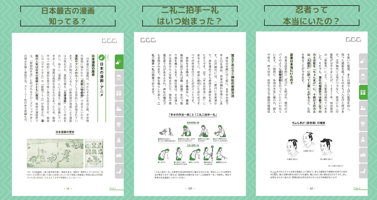 各章の重要なポイントを4つにぎゅぎゅっとまとめました。日本のことを海外でも説明できるように英語でも掲載。