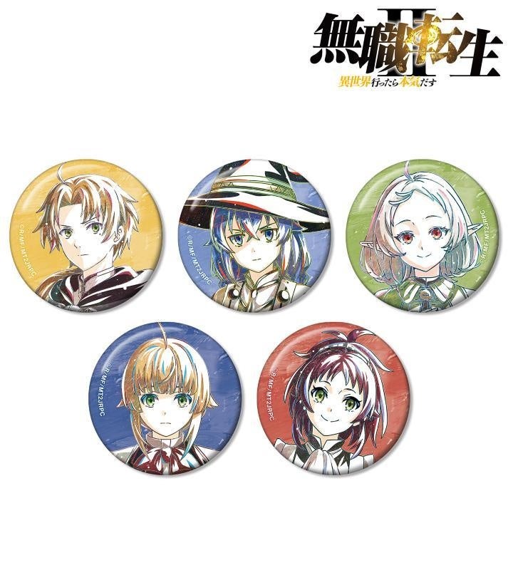 ルーデウス・グレイラット、ロキシー・ミグルディア、シルフィエット、ノルン・グレイラット、アイシャ・グレイラットを新たなタッチで魅力的に表現し、缶バッジに仕上げました。