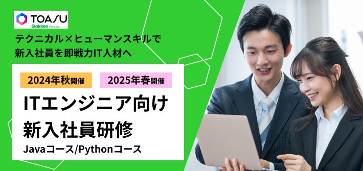 株式会社 学研ホールディングス(東京・品川/代表取締役社長:宮原博昭)のグループ会社、株式会社TOASU(東京・品川/代表取締役社長:宮田 晃)は、2024年秋および2025年春に開催される「合同オンライン形式 ITエンジニア向け新入社員研修」のキャンペーンを実施いたします。
