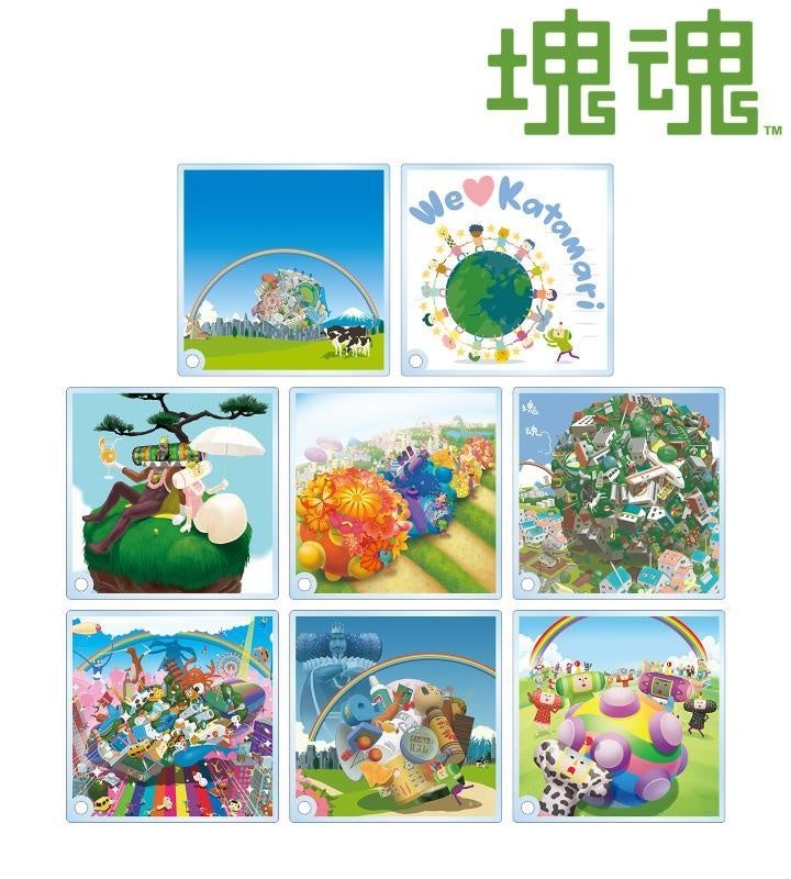 「塊魂」、「みんな大好き塊魂」、「僕の私の塊魂」、「ビューティフル塊魂」、「塊魂TRIBUTE」、「塊魂 ノ・ビ~タ」、「塊魂アンコール」、「みんな大好き塊魂アンコール+王様プチメモリー」のティザービジュアルを手のひらサイズのアクリルパネルに仕上げました。