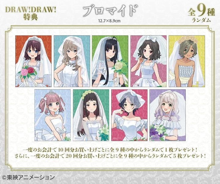 一度のお会計で10回分ご購入ごとに特典ブロマイド(全9種)の中からランダムで1枚、20回分ご購入ごとにランダムで5枚プレゼント!