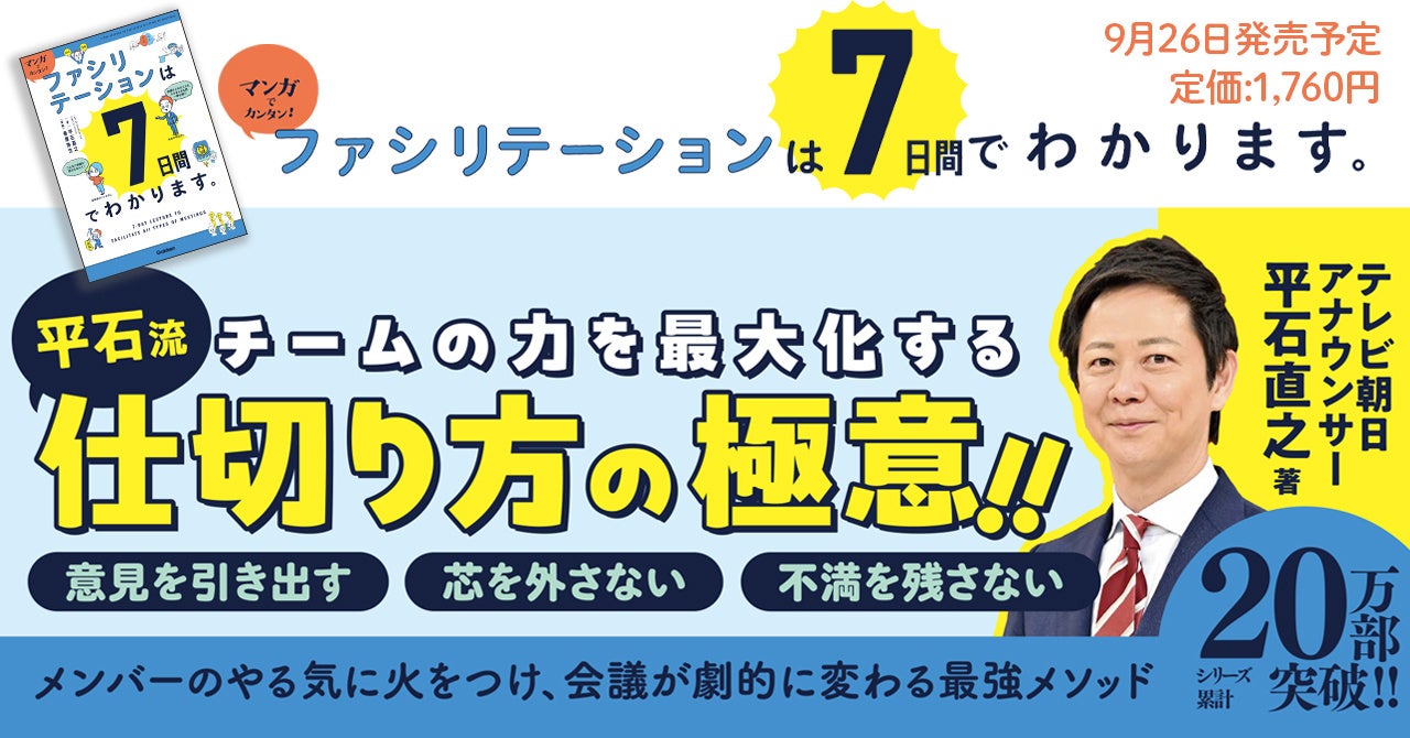株式会社 学研ホールディングス(東京・品川/代表取締役社長:宮原博昭)のグループ会社、株式会社 Gakken(東京・品川/代表取締役社長:五郎丸徹)は、2024年8月28日(水)よりテレビ朝日アナウンサー・平石直之著・春原弥生漫画『マンガでカンタン! ファシリテーションは7日間でわかります。』(9月26日(木)発売予定)の予約販売を開始いたしました。