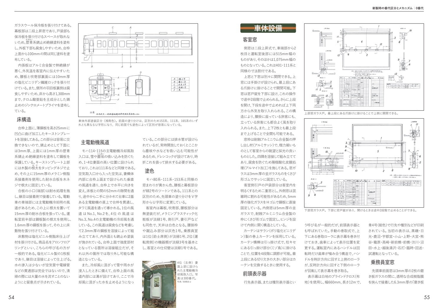 本書は、「鉄道車両メカニズム&ディテール」のシリーズ名の通り、メカニズム解説とディテール写真に重きを置いています。本書の前半では、しなの鉄道で現役の115系S3編成を取材させていただき、外観や客室だけでなく、乗務員室、床下機器など、通常は入れない場所や見えない角度のディテール写真を撮影しています。実車を詳しく知りたい人にはもちろん、鉄道模型のディテールアップの資料にもなります。メカニズム解説では、国鉄が作成した技術解説書を元に、写真や図面などの資料を交えながら、115系が初採用した技術を中心に詳しく解説しています。