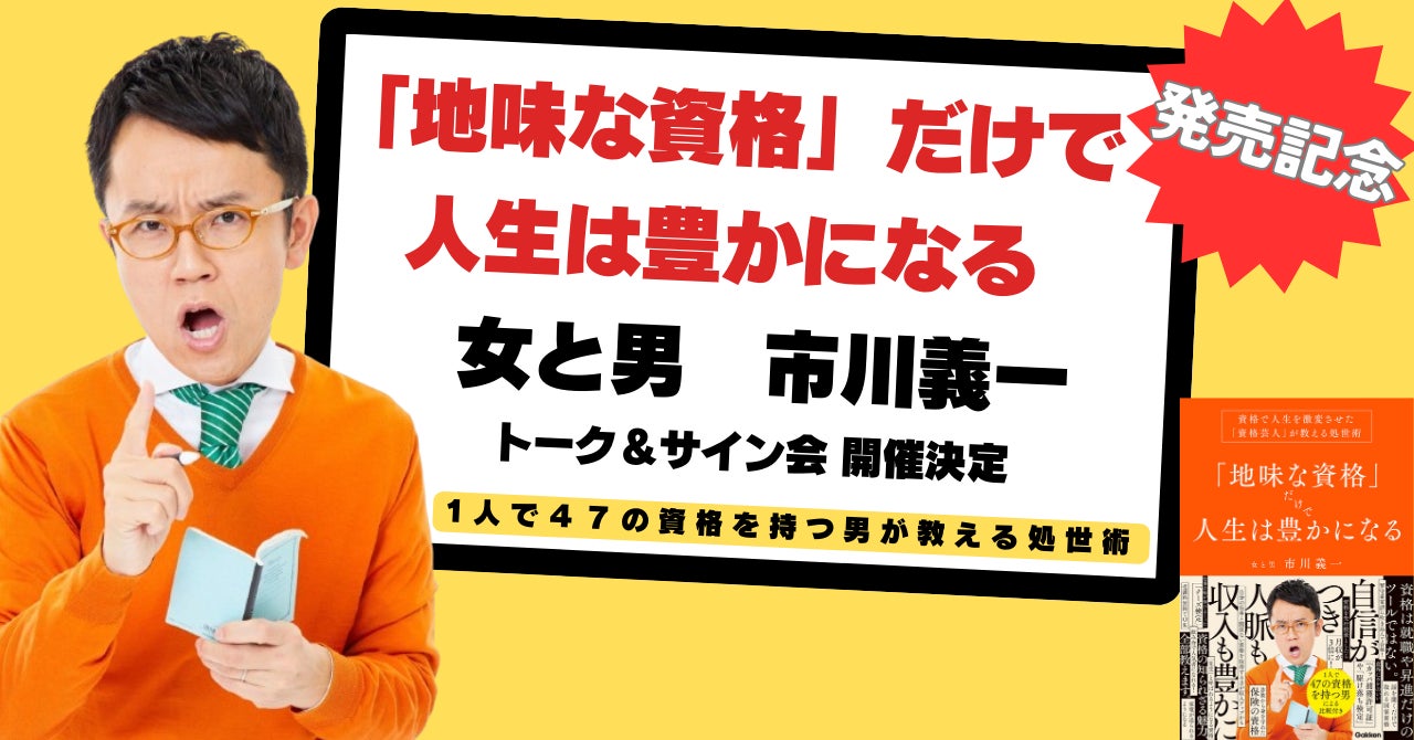 女と男 市川義一の初著書『「地味な資格」だけで人生は豊かになる 資格で人生を激変させた「資格芸人」が教える処世術』の発売を記念して、著者登壇のトーク&サイン会を大阪にて開催いたします。