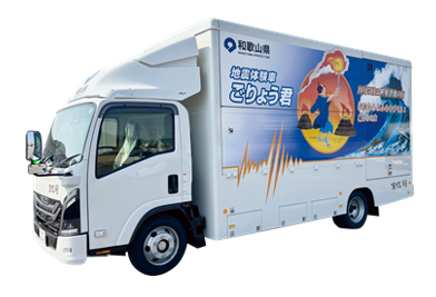 駐車場にて、実際の地震の揺れを再現する体験車に乗車できます。