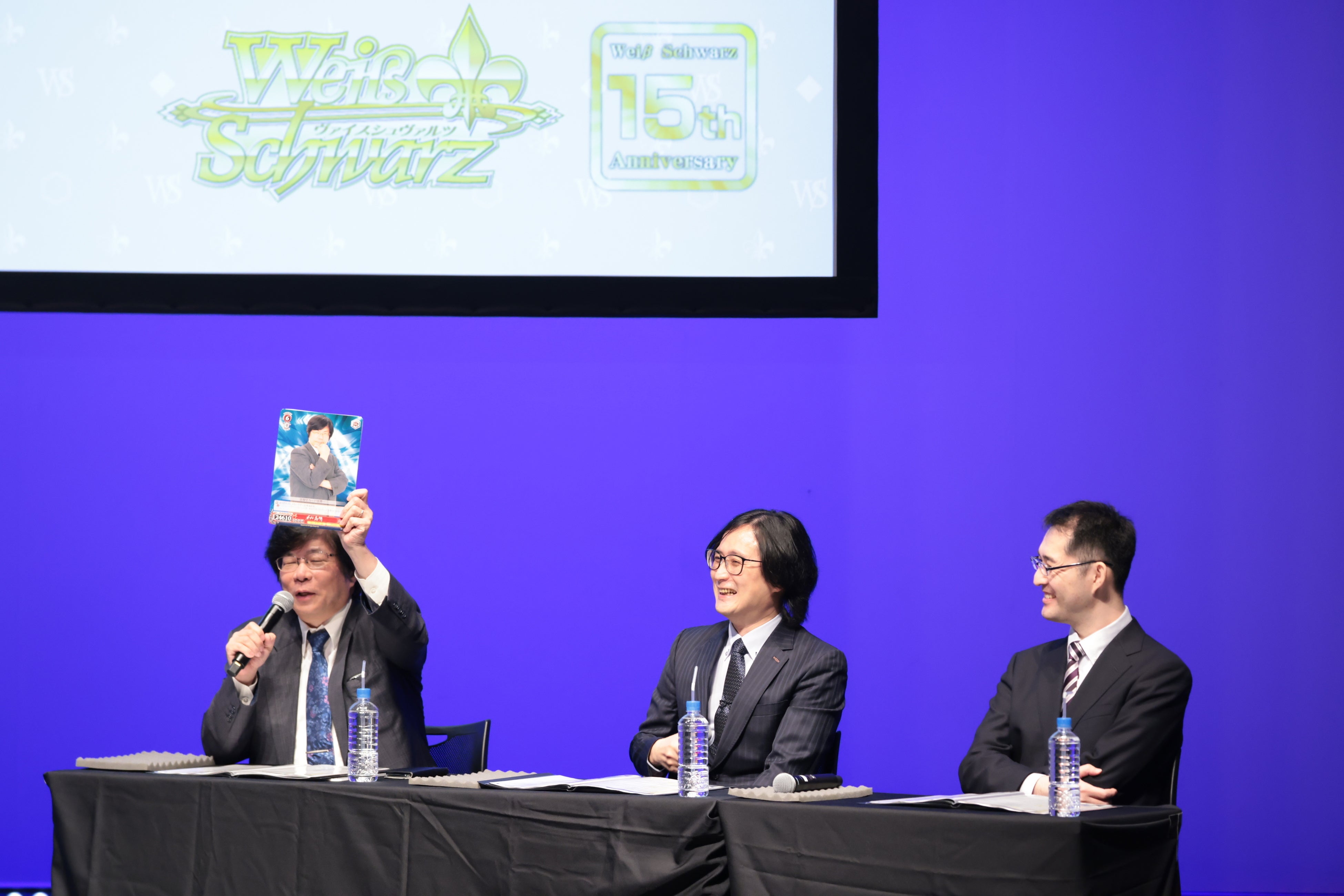 ヴァイスシュヴァルツ15周年のあゆみを振り返りながら、商品開発のきっかけや思い出の1枚についてクロストークを行いました。