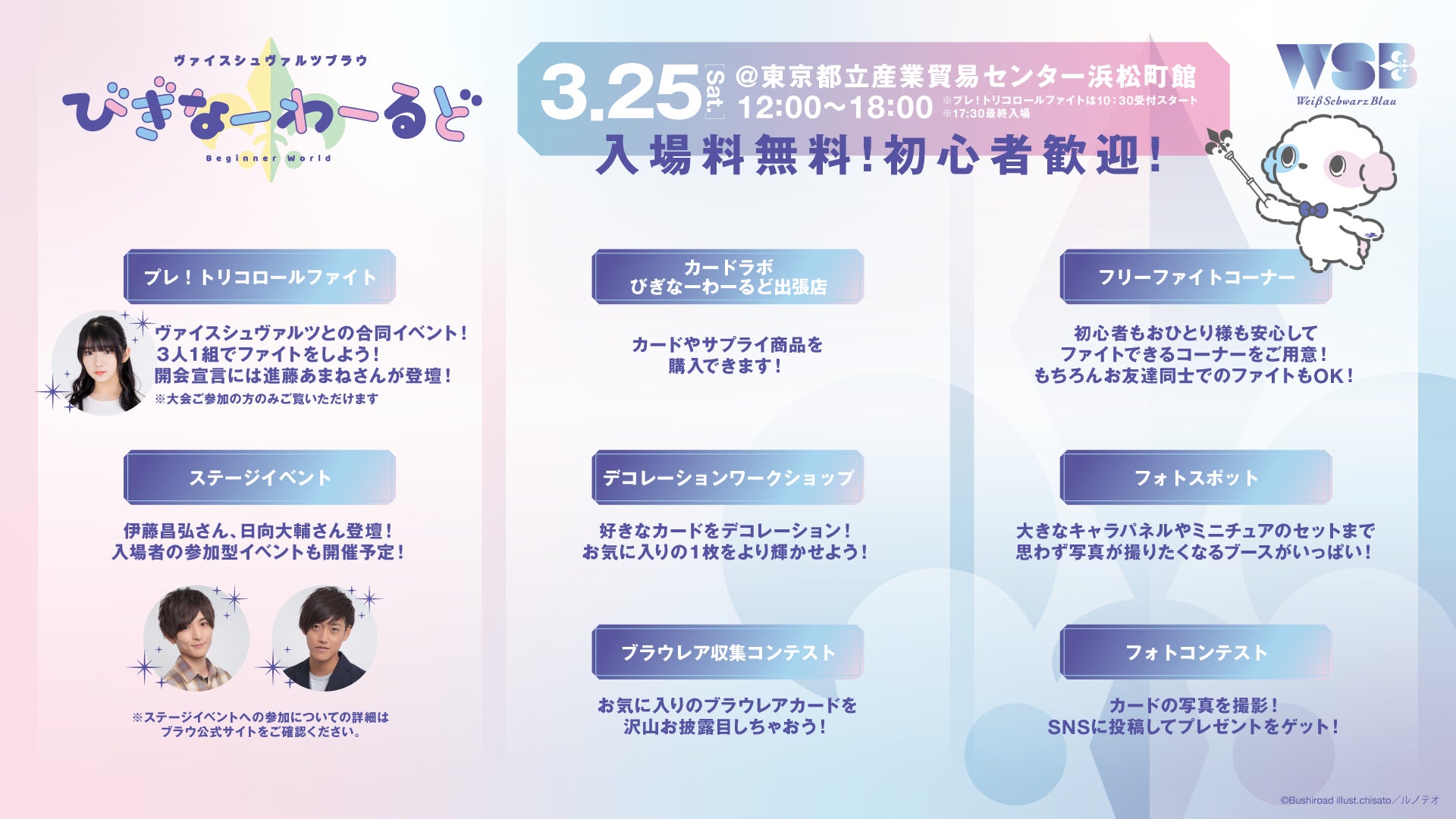 ヴァイスシュヴァルツブラウが3月25日(土)に開催する『ヴァイスシュヴァルツブラウびぎなーわーるど』は、入場料無料・初心者歓迎!