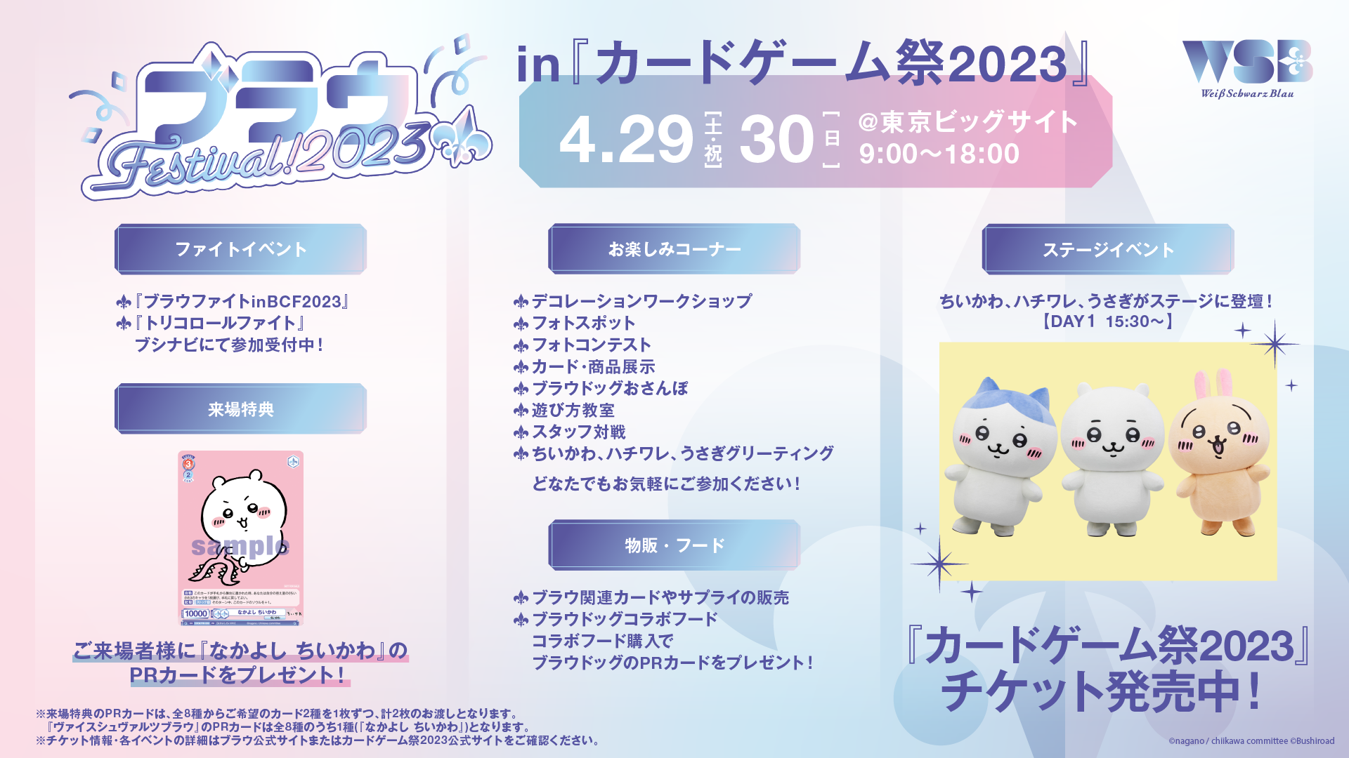 4月29日(土・祝)30日(日)東京ビッグサイトにて開催の『ブシロードカードゲーム祭2023』にて『ブラウFestival!2023』が開催。