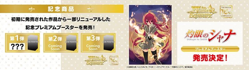 ヴァイスシュヴァルツの初期に発売された作品から、かつてのカードの加工やテキスト、一部デザインを新たにしたプレミアムブースターを発売いたします。