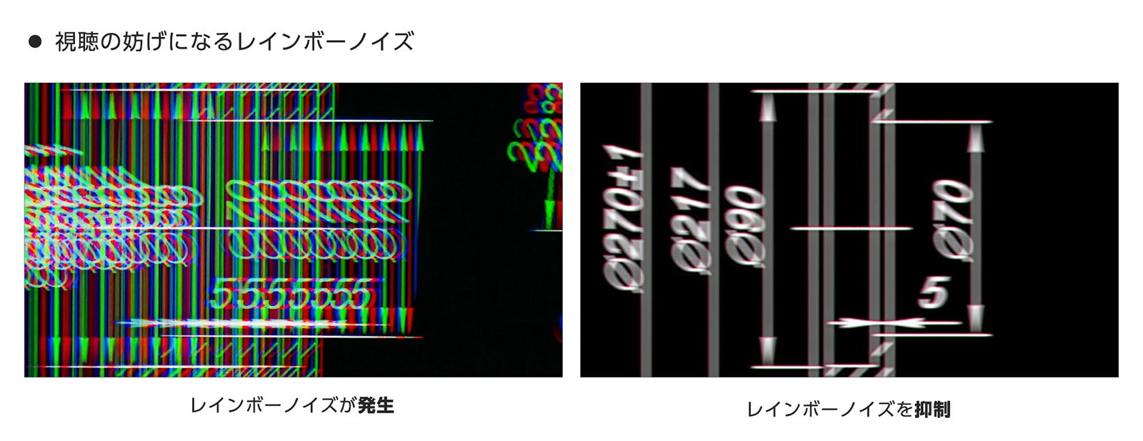 2. レインボーノイズの低減で快適な視聴体験を実現