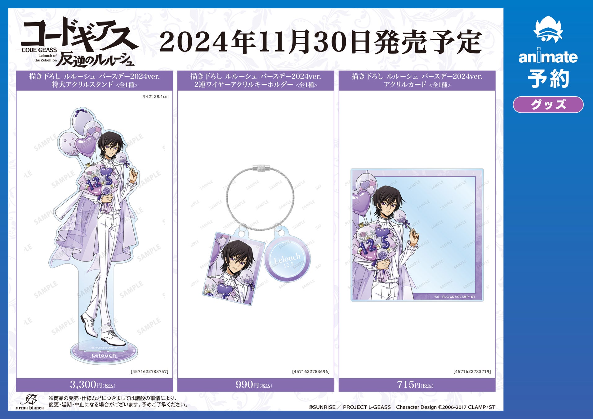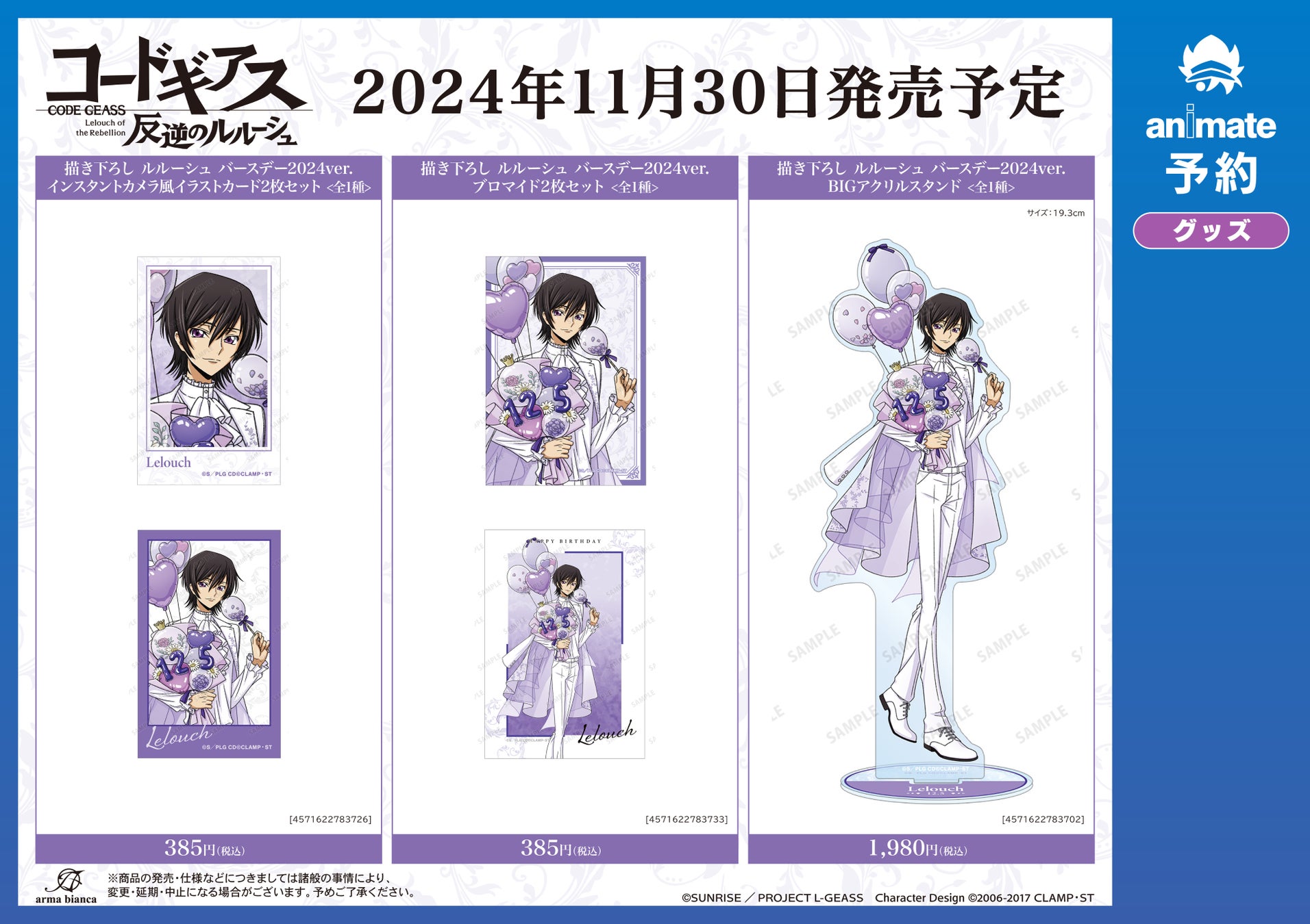 漫画・アニメのオリジナルグッズを販売する株式会社アルマビアンカ(本社:東京都中野区、代表取締役:坂井智成)は、この度、「『コードギアス 反逆のルルーシュ』ルルーシュ バースデーフェア 2024 in アニメイト」を実施いたします。