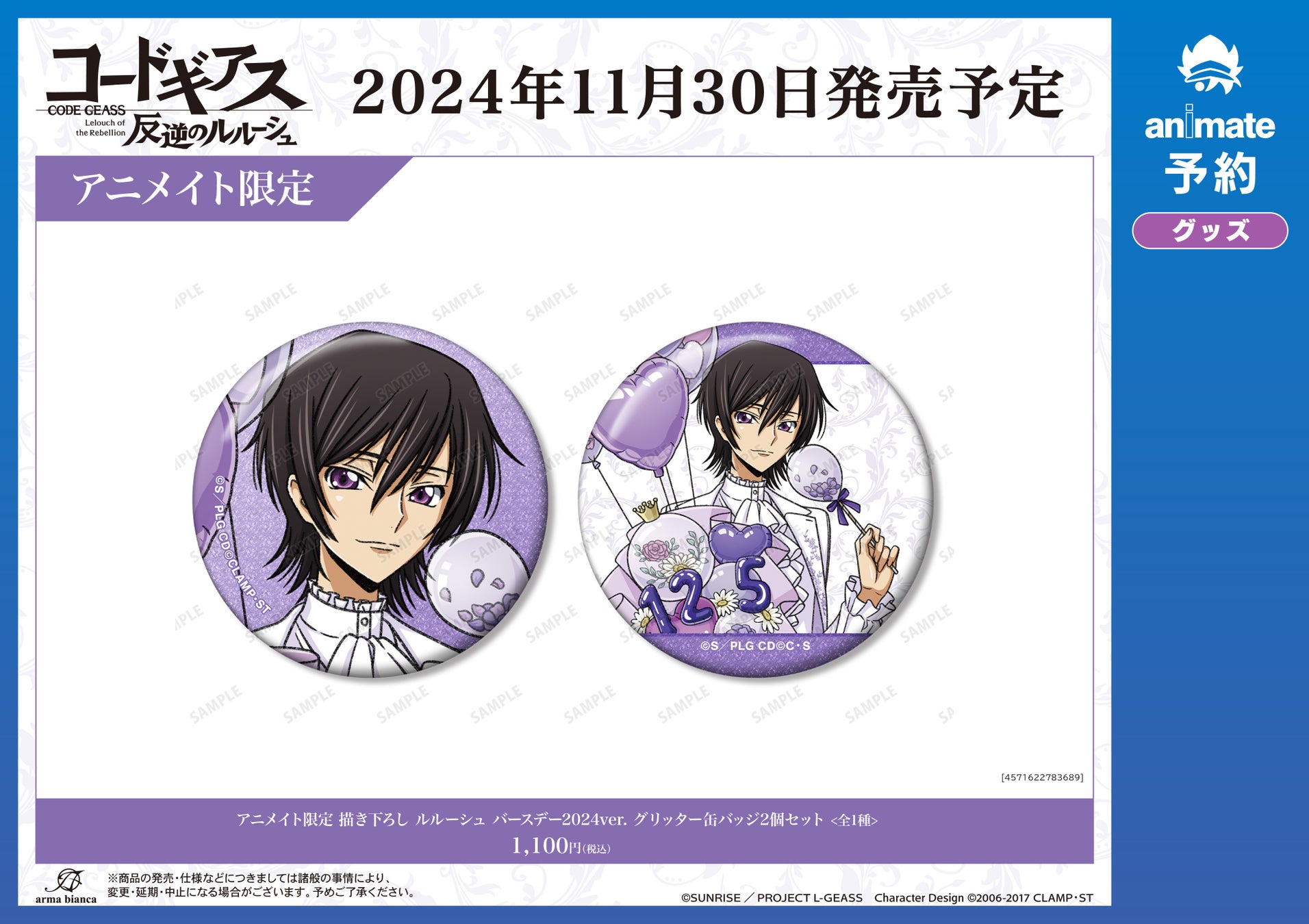 ▼アニメイト限定 描き下ろし ルルーシュ バースデー2024ver. グリッター缶バッジ2個セット(全1種)