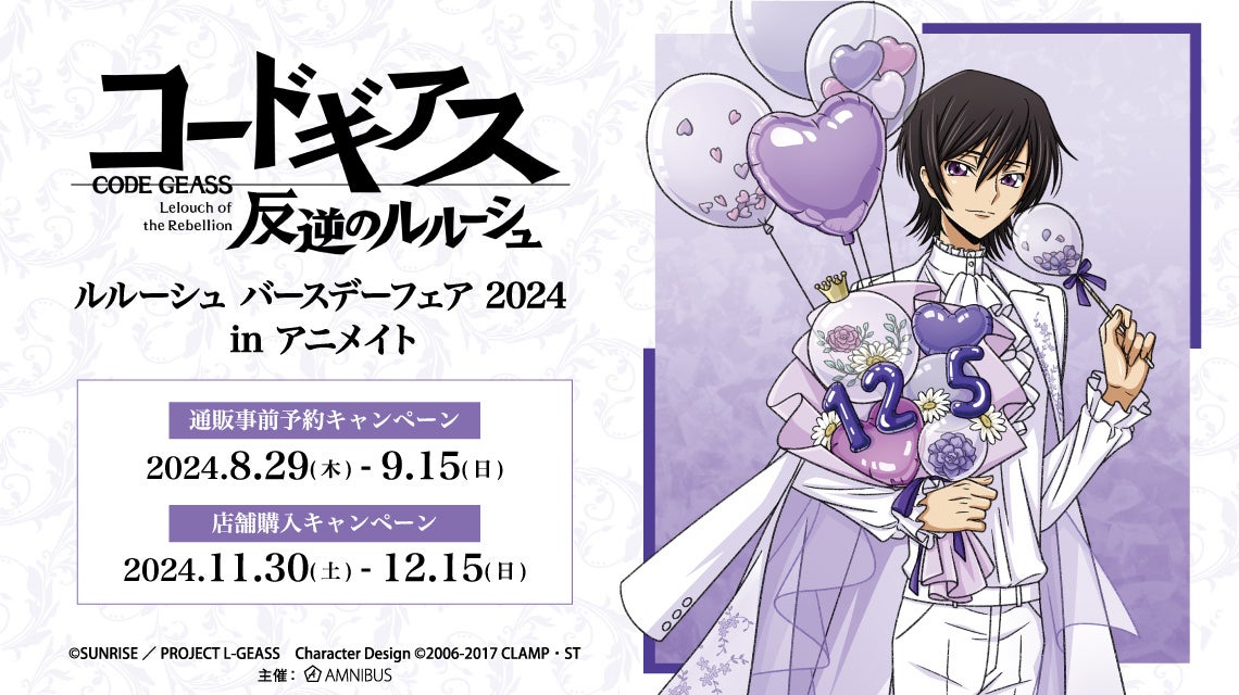 アニメイト対象店舗にて、「『コードギアス 反逆のルルーシュ』ルルーシュ バースデーフェア 2024 in アニメイト」を実施いたします。