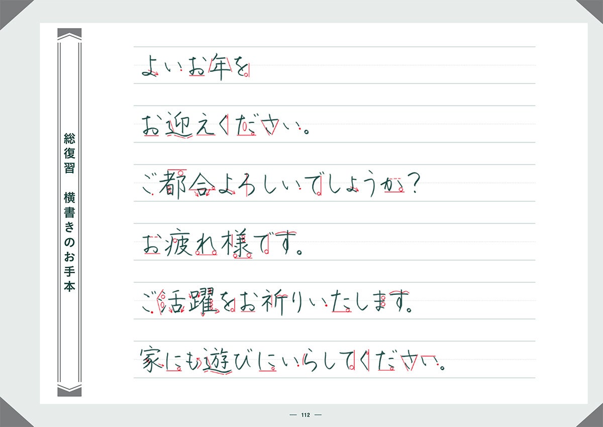 巻末にはCHAPTERごとに学習した文字を復習できる美文字マスター練習帖を用意しています。日常で書く機会が多い定型文も練習できます。ぜひ「リバウンド」しない美文字を目指して取り組み、一生の宝物を手に入れてください。