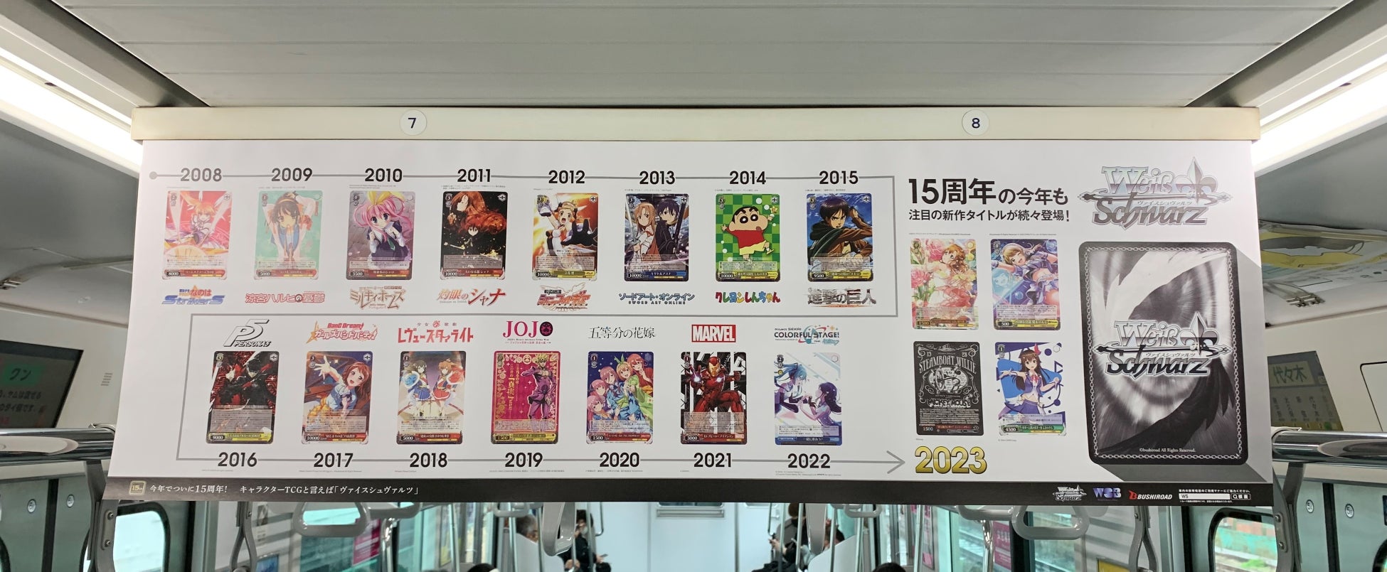 ブシロードのトレーディングカードゲーム「ヴァイスシュヴァルツ」が15周年!首都圏電車内+三大電気街(秋葉原・大須・日本橋)他に記念広告を掲出中!