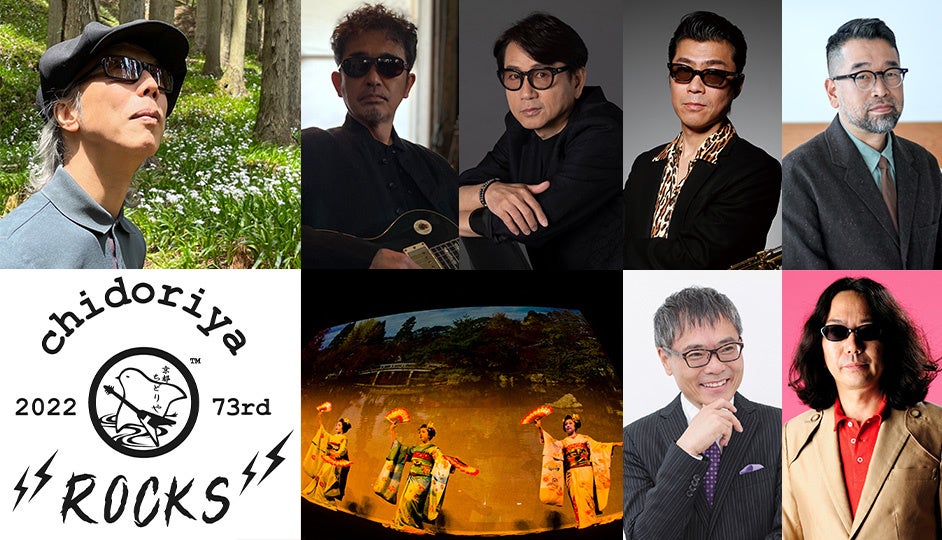 京都で開催する「chidoriya Rocks 2022 〜73rd Anniversary」は、ROCK+京都ならではの文化が融合するディープなイベント。こんな時代だからこそ“祭りを絶やさない”を胸に、奥田民生、藤井フミヤ、藤井尚之、槇原敬之によるLIVEエンターテイメントに加えて、宮川町 舞妓・芸妓による唄や舞、さらにみうらじゅんといとうせいこうによる炸裂トークあり。ここでしか味わえない芳醇なエンターテイメントステージ!プロデューサーは屋敷豪太・朋美夫妻。8月12日(金)京都ロームシアターで開催。