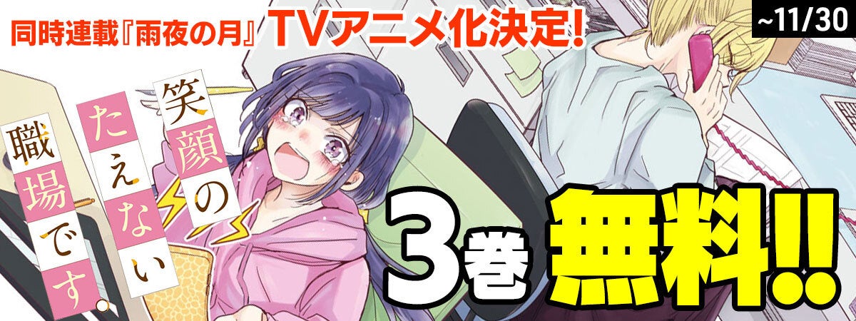 アニメ化発表に合わせて、「コミックDAYS」にて、『雨夜の月』の第1~2巻分と、『笑顔のたえない職場です。』第1~3巻分を無料で読めるキャンペーンを11月30日(土)まで実施します。