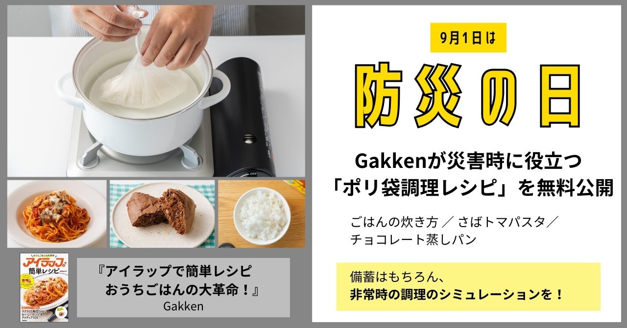 株式会社 学研ホールディングス(東京・品川/代表取締役社長:宮原博昭)のグループ会社、株式会社 Gakken(東京・品川/代表取締役社長:五郎丸 徹)は、2024年8月29日(木)に災害時に役立つ「ポリ袋調理レシピ」を無料公開しました。
