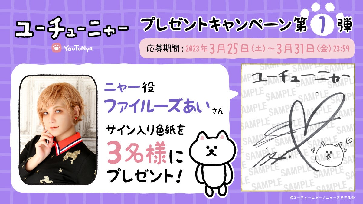 第一弾はニャー役のファイルーズあいさんのサイン色紙をプレゼント!