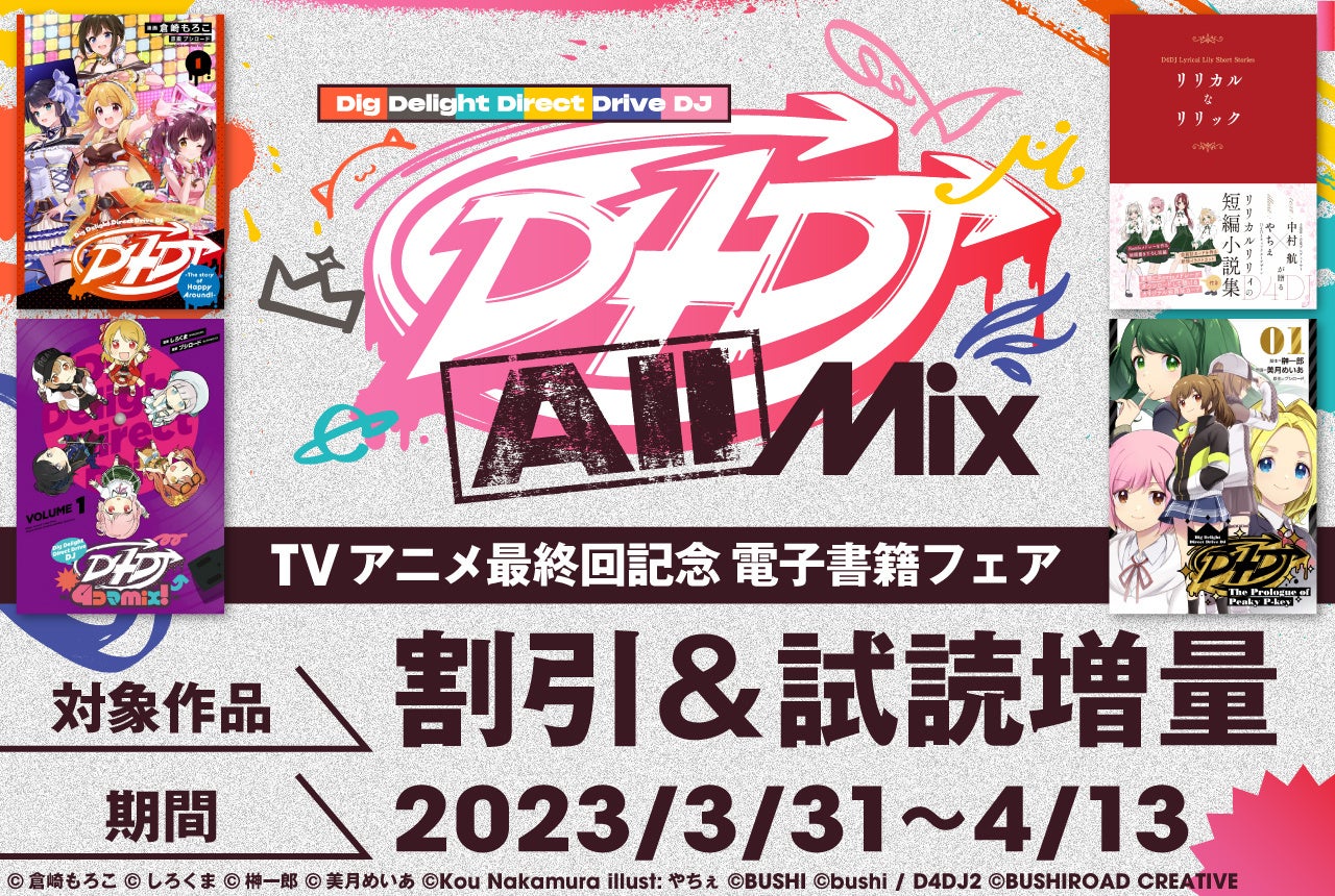2023年3月31日(金)にTVアニメ「D4DJ All Mix」の最終回が放送されることと、「D4DJ」関連書籍の新刊が発売することを記念して「D4DJ」関連電子書籍のフェアを行います。