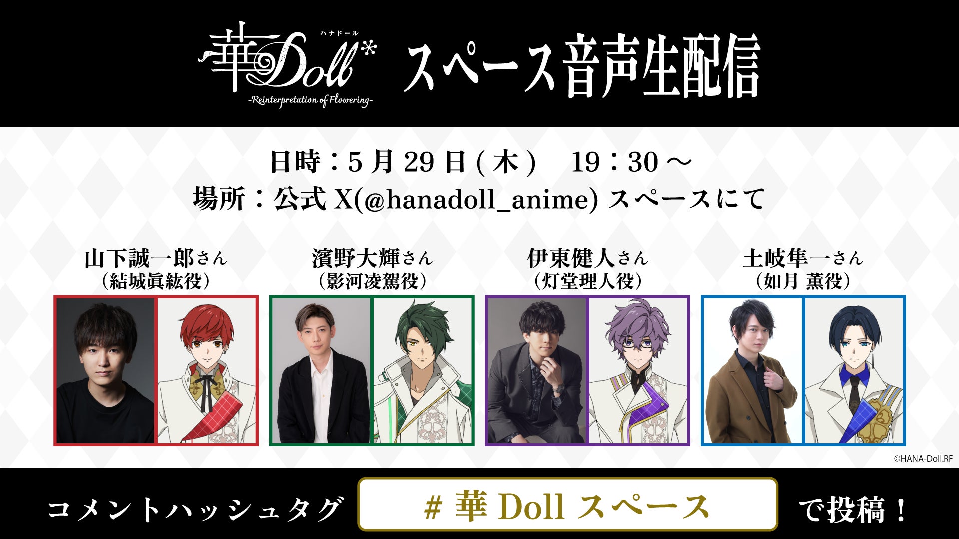 TVアニメ「華Doll* -Reinterpretation of Flowering-」山下誠一郎、濱野大輝、伊東健人、土岐隼一が送る公式Xスペース音声生配信決定!