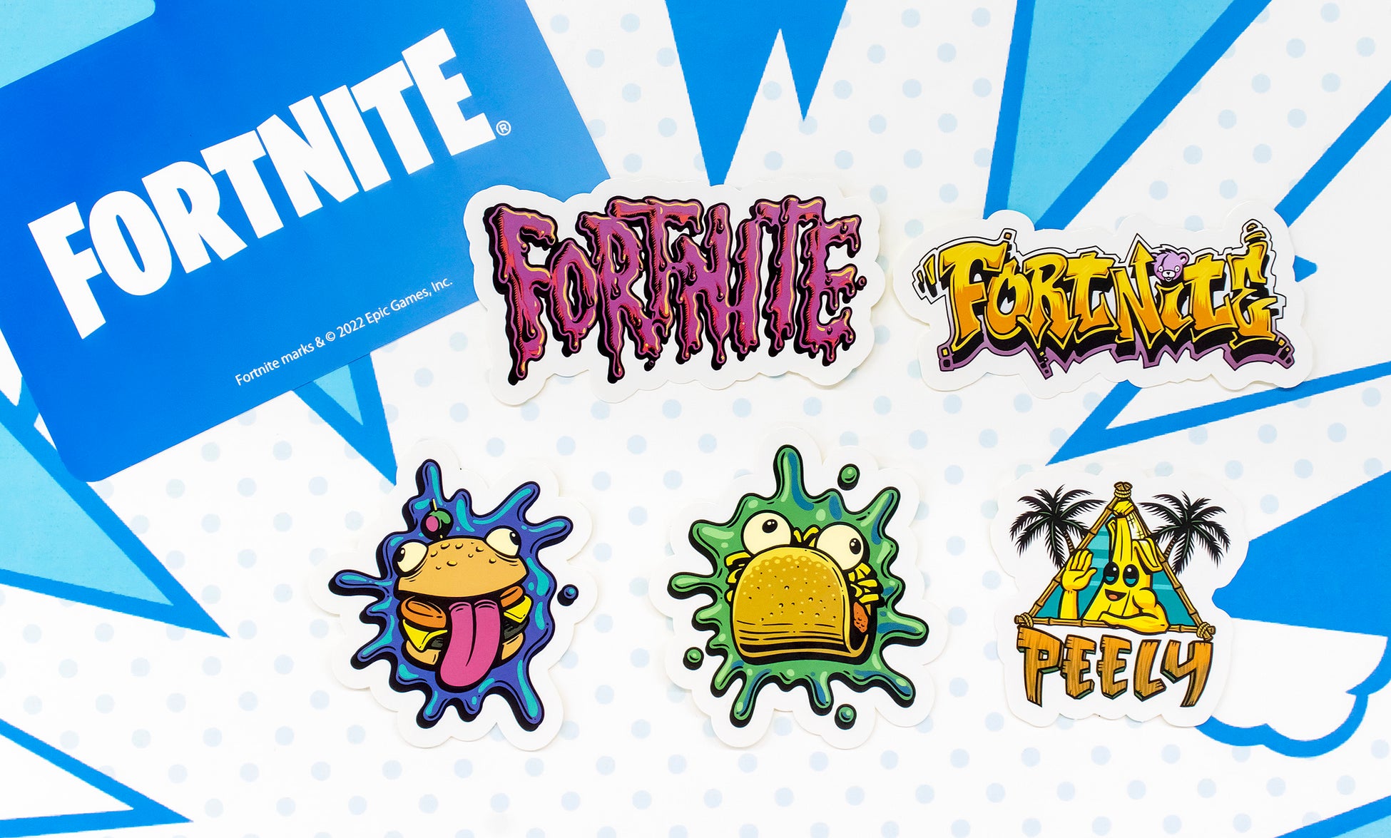 期間中、「FORTNITE」関連のグッズを3,300円(税込)ご購入毎に特典 【ダイカットステッカー(全5種)】を1枚プレゼント!