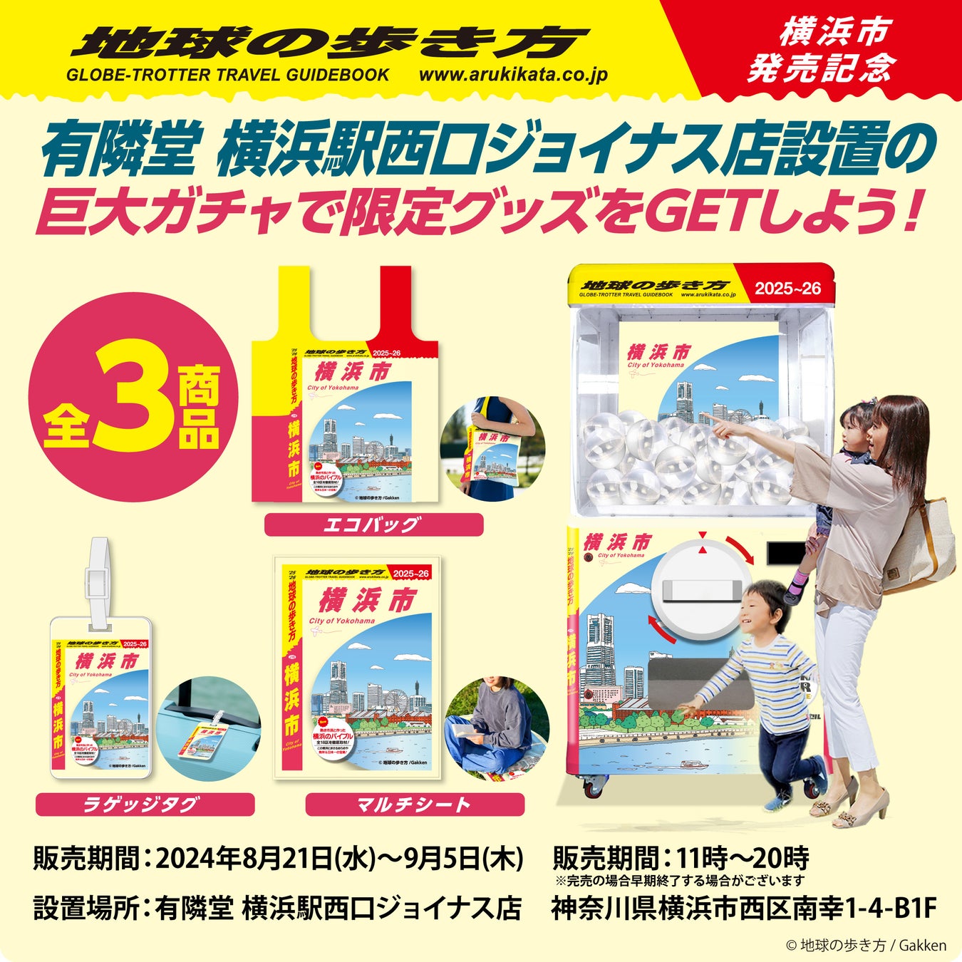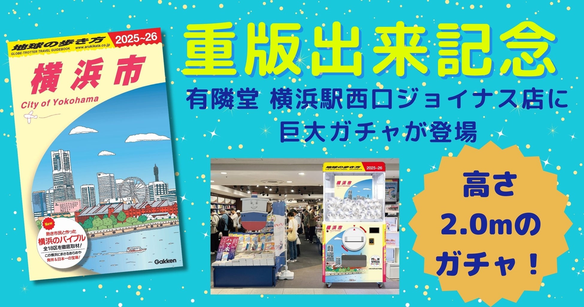 『地球の歩き方 横浜市』重版決定! 有隣堂 横浜駅西口ジョイナス店に高さ2.0mの巨大ガチャが登場し、限定グッズ3種類を発売中