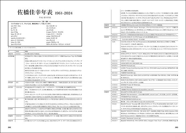さらに、幼少期からの生い立ちを綴ったバイオグラフィー、詳細な年表、愛用ギター・コレクション、佐野元春、ピーター・ゴールウェイとの対談も加える。「佐橋佳幸の40曲」はRe:minder(https://reminder.top/)での連載に加筆修正したもの。