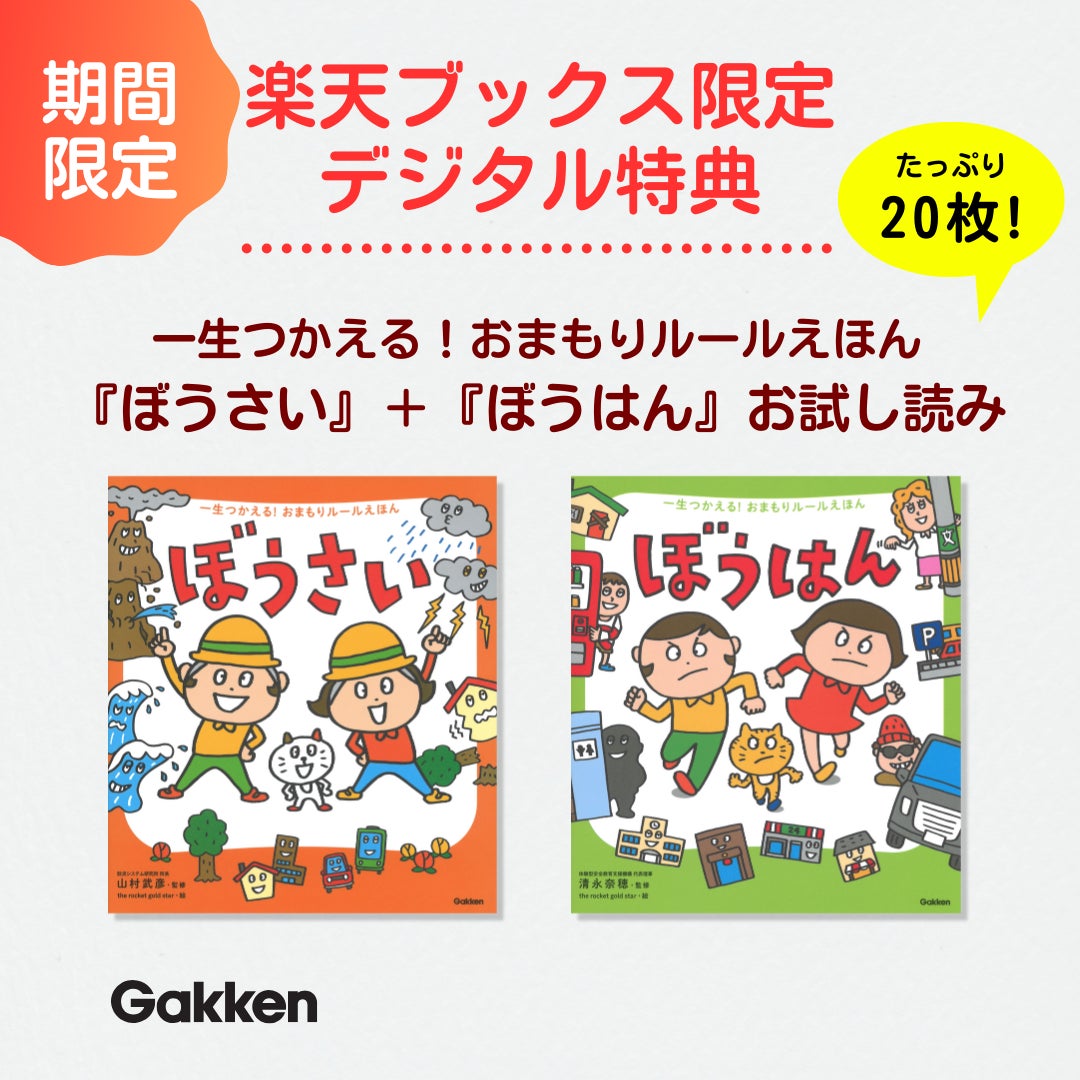 楽天ブックスで購入いただくと、『一生つかえる! おまもりルールえほん ぼうさい』&『ぼうはん』を試し読みできます。