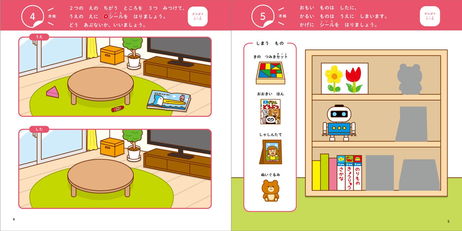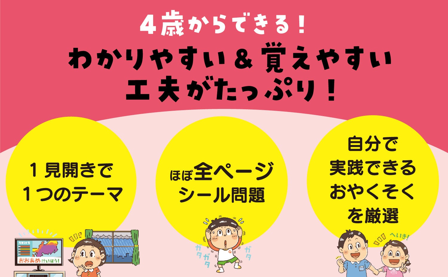 防災知識を教える必要性は感じており、取り組んではいるけれど、いざというときの行動を子どもは分かっていない…。そこで、お子さんの理解を促し、いざというときに「実行できる」知識を身につけてもらえるように、シールを使って防災の基本が学べるワークを発売いたしました。