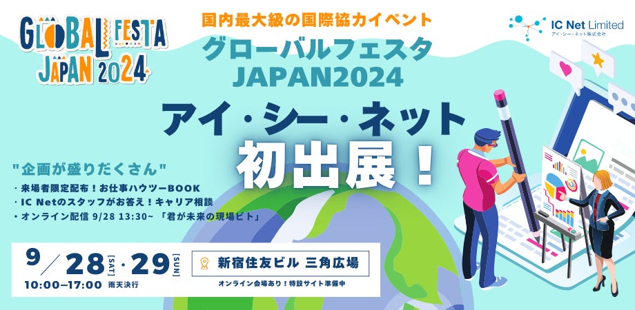 株式会社 学研ホールディングス(東京・品川/代表取締役社長:宮原博昭)のグループ会社、アイ・シー・ネット株式会社(埼玉/代表取締役:百田顕児、以下アイ・シー・ネット)は、2024年9月28日(土)・29日(日)に東京都新宿区で開催されるグローバルフェスタJAPAN2024に初出展いたします。