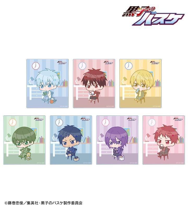 黒子テツヤ、火神大我、黄瀬涼太、緑間真太郎、青峰大輝、紫原 敦、赤司征十郎のちびキャライラストをアクリルステッカーに仕上げました。