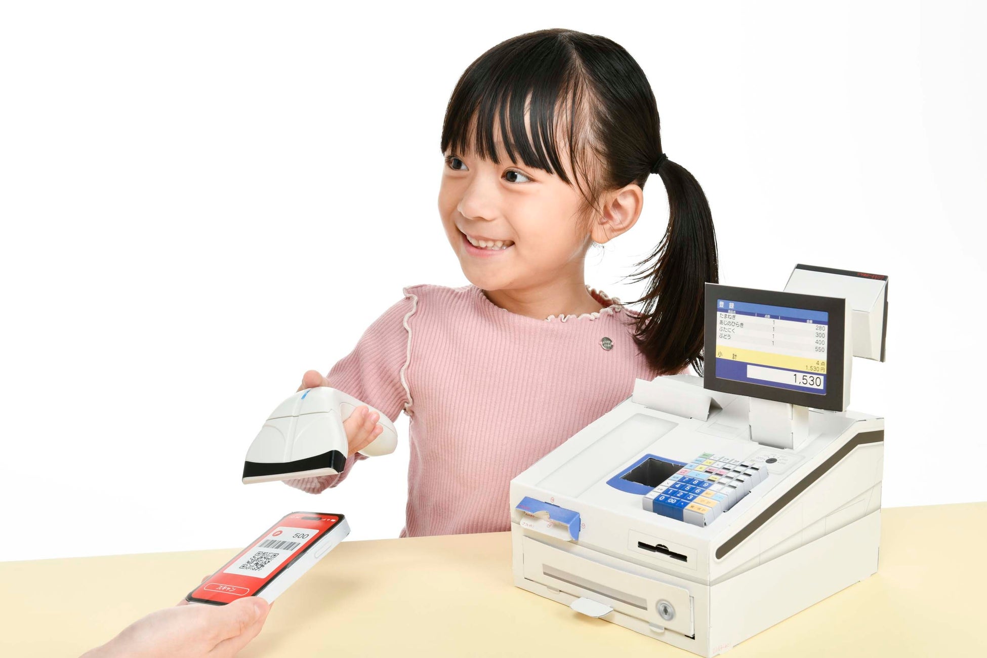 身近なショッピングを通して、お金のしくみを遊んで学びましょう! 大人の真似をしたい小さなお子さんと、レジスキャナーでタッチしながら、楽しくお買い物をしてみてください。