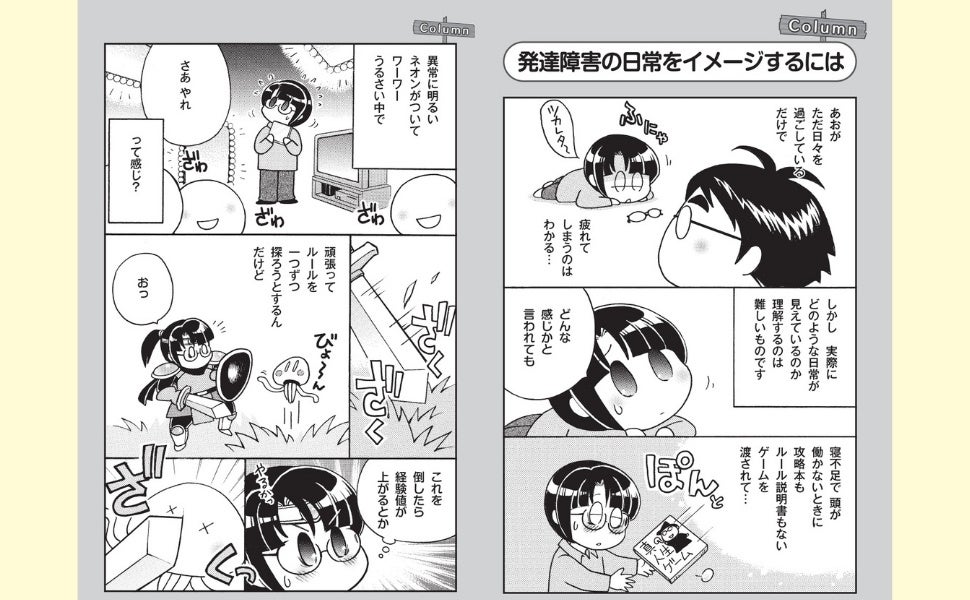 彼女のあおに発達障害があるのが判明し、独学で発達障害について学びつつ、自分の障害の経験をもとにサポートしている。