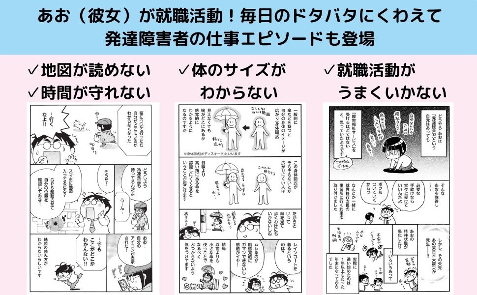 その後二人は同棲を始めることに。第2弾「ドタバタ同棲生活編」はそんな一緒に暮らしてからのエピソードを綴ります。就職活動や仕事のエピソードからも発達障害と支援のことがよくわかります。