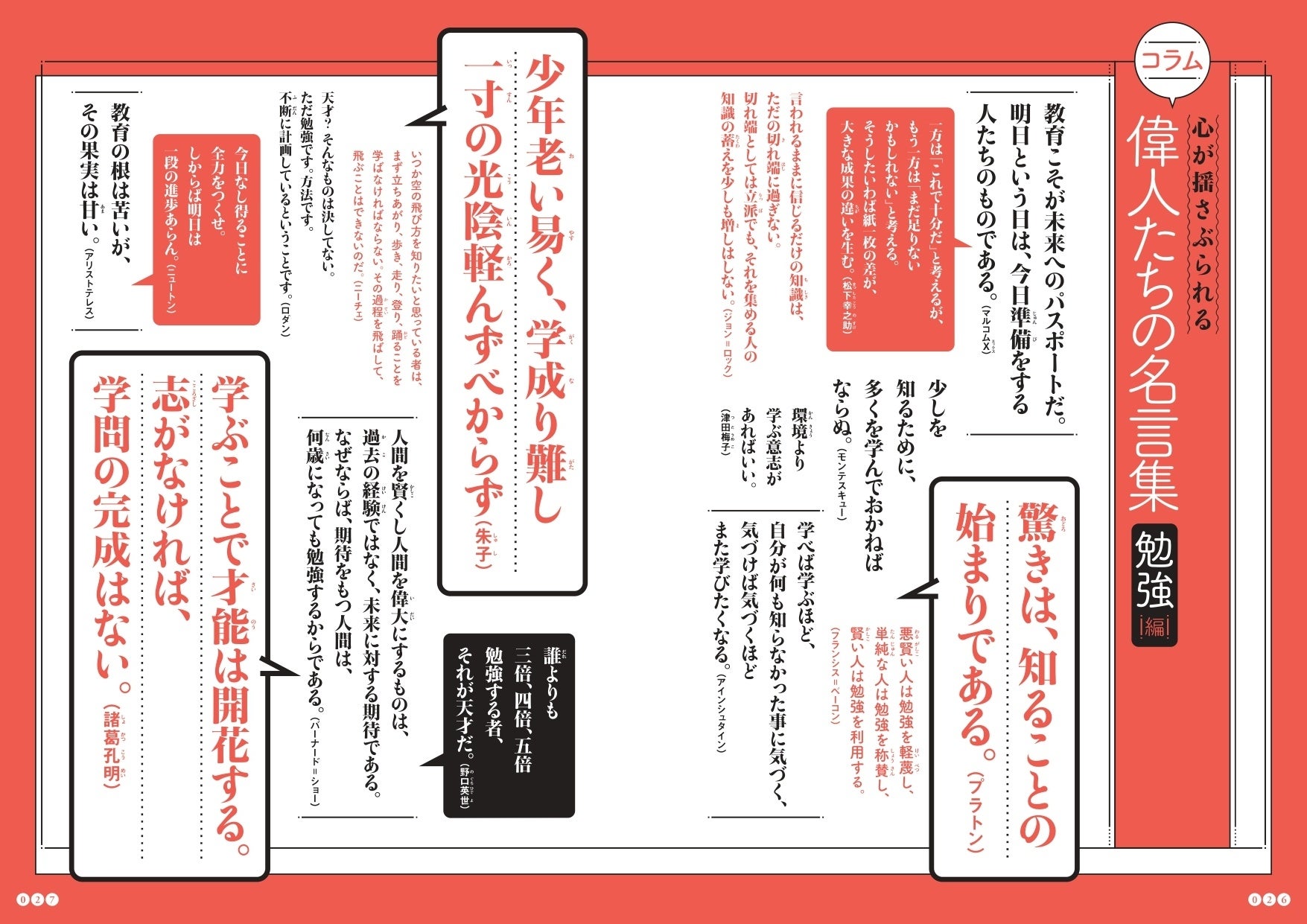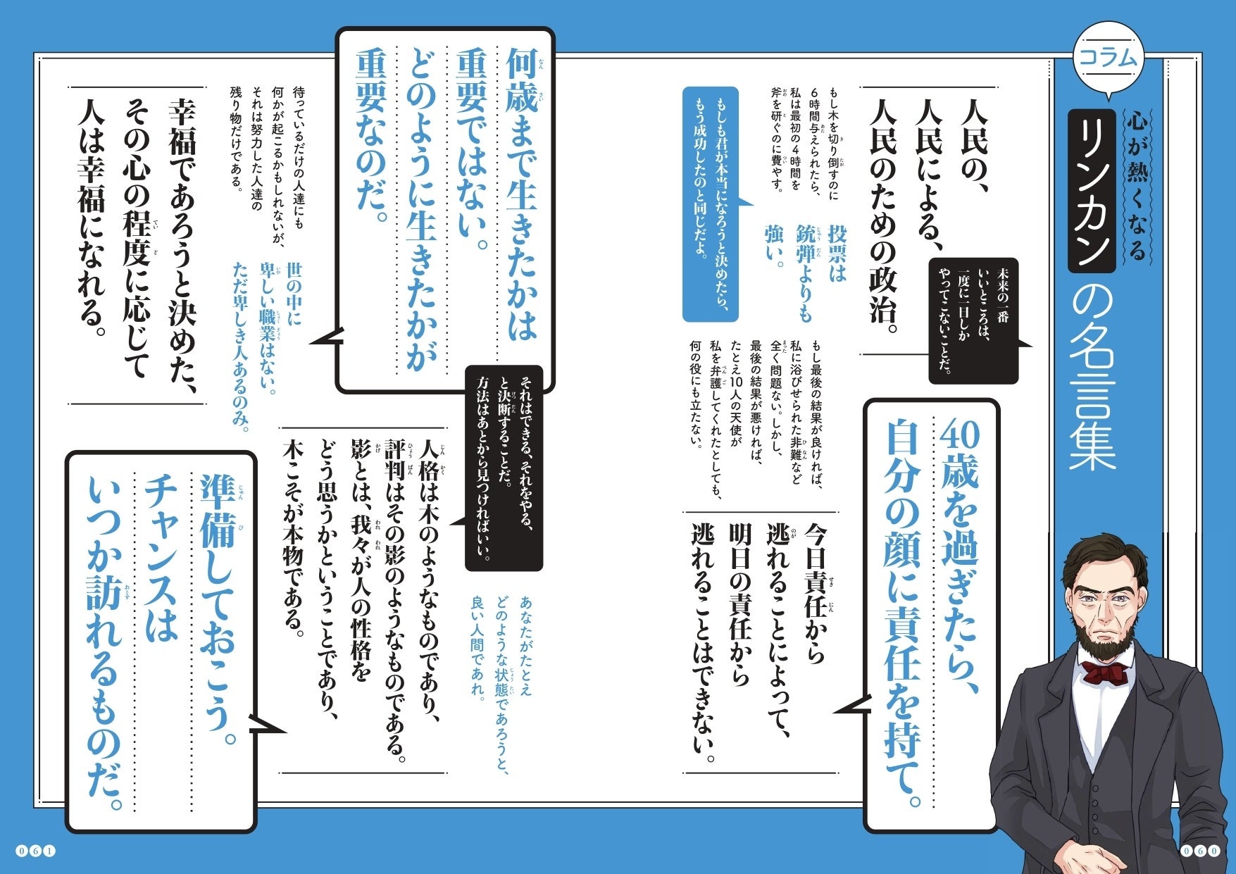 マンガの中で名言を取り上げるだけではなく、コラムでも多数紹介! 人物、テーマごとにまとめられた名言をたくさん知ることができます。