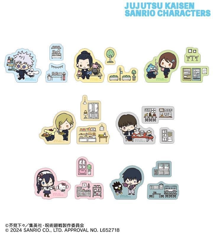 種類 :全7種(五条 悟×シナモロール、夏油 傑×ルロロマニック、家入硝子×ハンギョドン、七海建人×ポムポムプリン、灰原 雄×コロコロクリリン、天内理子×こぎみゅん、伏黒甚爾×バッドばつ丸)