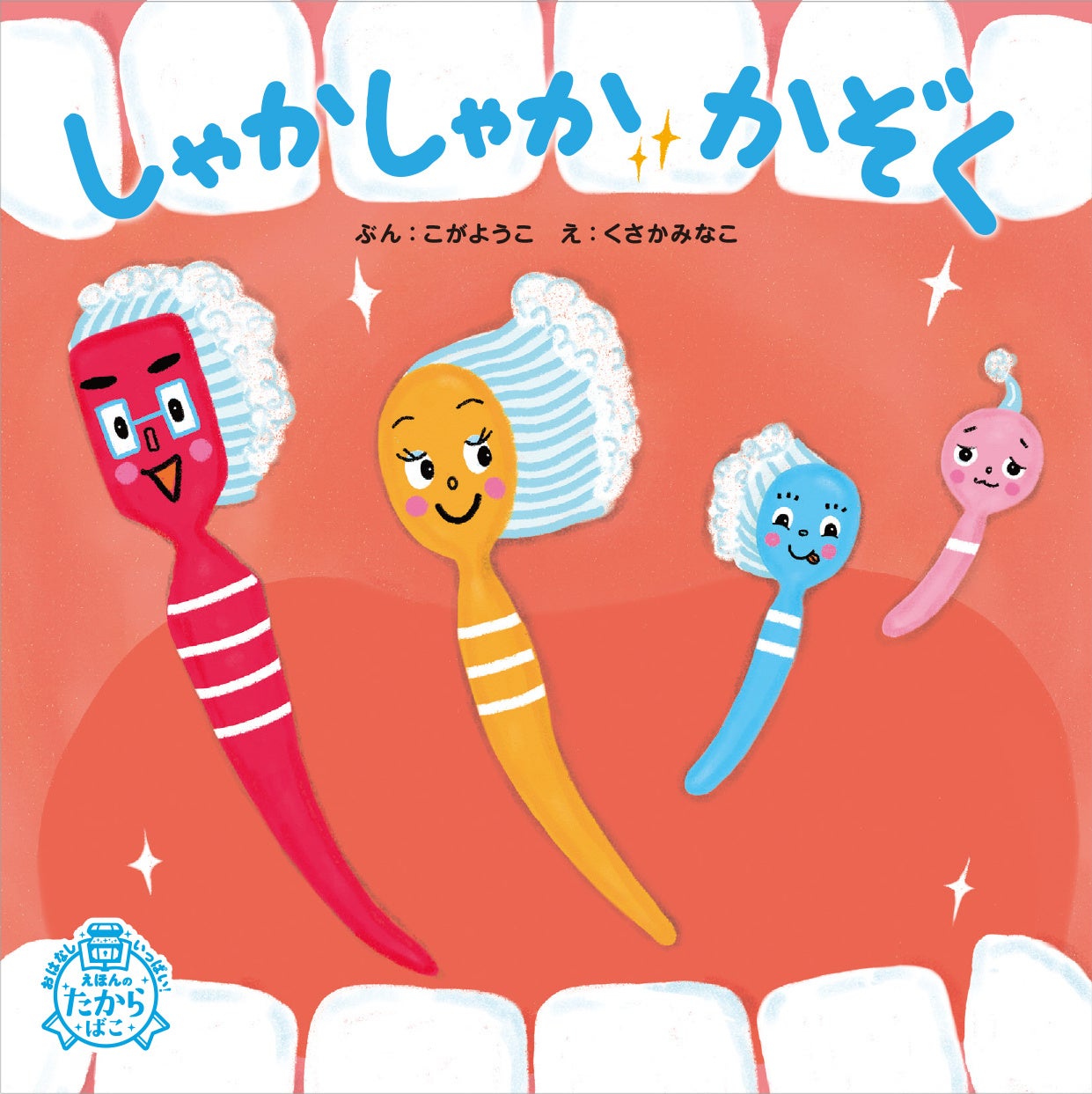 絵本ふろくは、「しゃかしゃか かぞく」。はみがきだいすきなしゃかしゃかかぞくが、いろんな動物たちと一緒にしゃかしゃかはみがき! はみがきの前に家族で読んで一緒にはみがきしてくださいね。