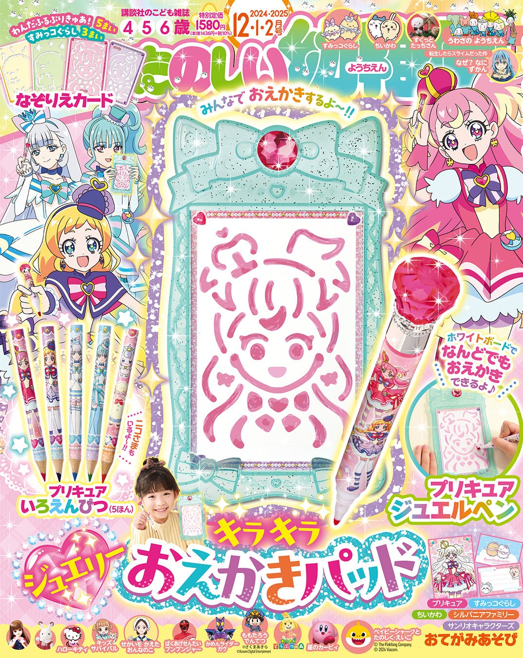 株式会社講談社は、2024年10月31日に『たのしい幼稚園12・1・2月号付録』を発売します。特別付録は『キラキラジュエリー おえかきパッド』です。