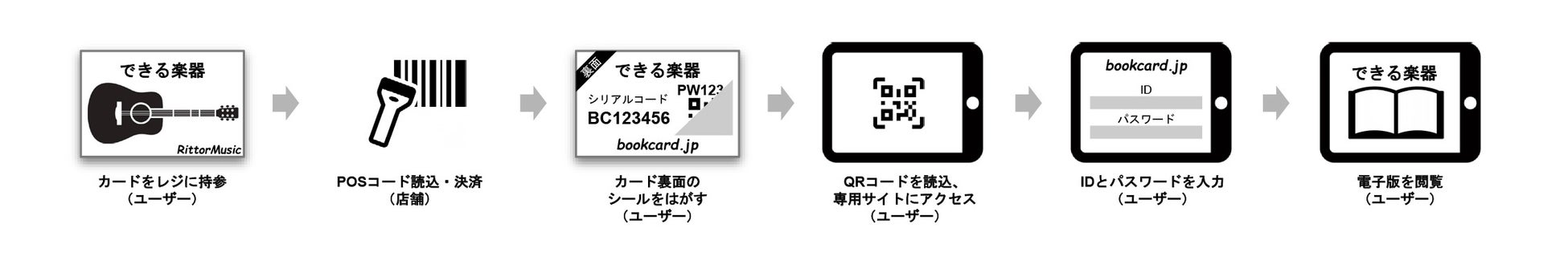電子書籍を楽器店や書店にてカード形式で販売、ご購入者様(ユーザー)がパソコンやスマホで閲覧できるサービスを開始します。
