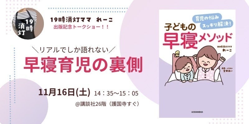 また、書籍『育児の悩みスッキリ解決!子どもの早寝メソッド』をご予約いただいたイベント参加者には、抽選でプレゼント予定! 書籍ご予約画面をスクショして、ぜひイベントまでお越しください。