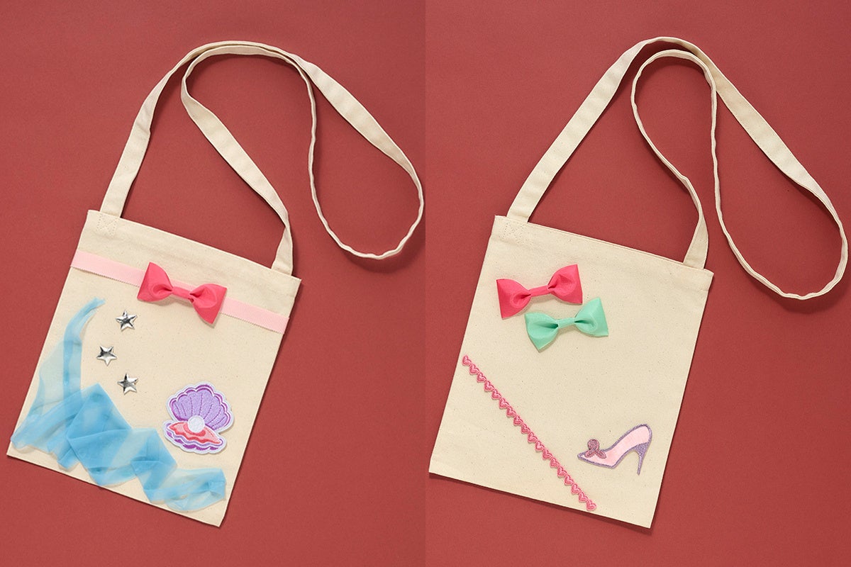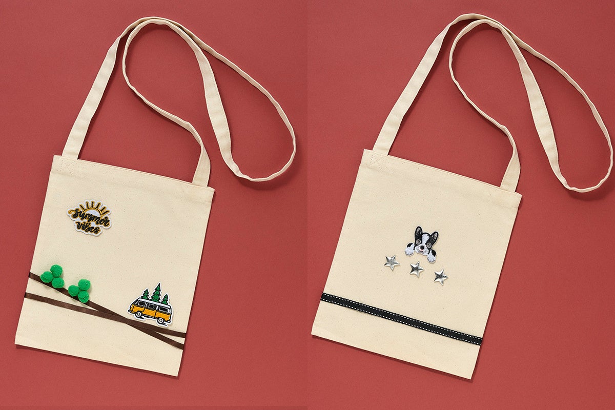 ちょうどいいサイズのキャンバス地風のサコッシュをご用意しました。好きなモチーフのワッペンやリボンを選んでポップに、シンプルなデザインでオシャレにと、自分だけのバッグが作れます♪