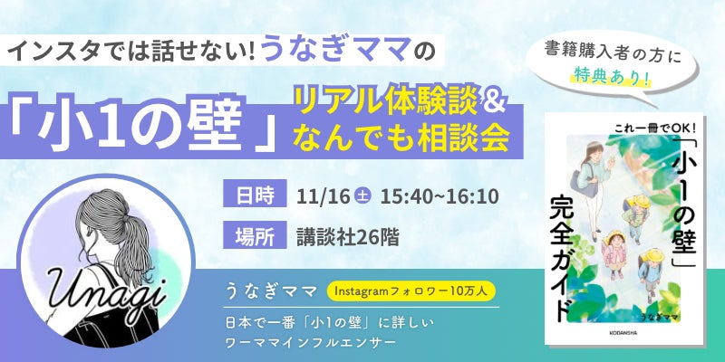 オフラインイベントだからこそ話せる、うなぎママさんのリアル「小1の壁」体験談を正直トーク!働きながらの「小1の壁」で困ったこと・辛かったこと、それをどう乗り切ってきたか、などを具体的に解説!