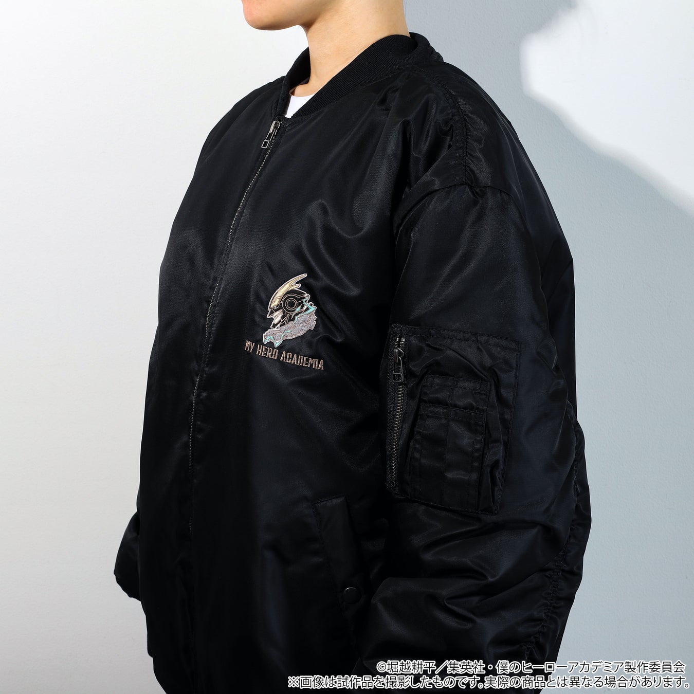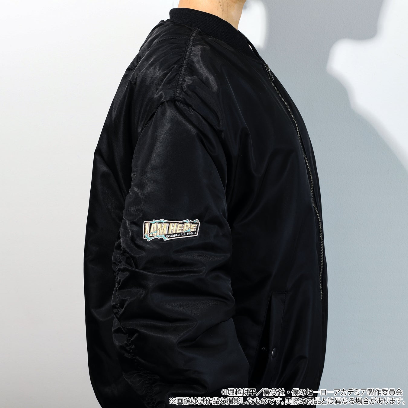 <<私が来た!!>>アーマード・オールマイトをモチーフにしたMA-1が登場です!ブラックを基調に、胸元と右腕に刺繍を施し、シンプルながら力強さを感じるデザインに。日常使いしやすいように着用時のシルエットもシンプルに仕上げました。