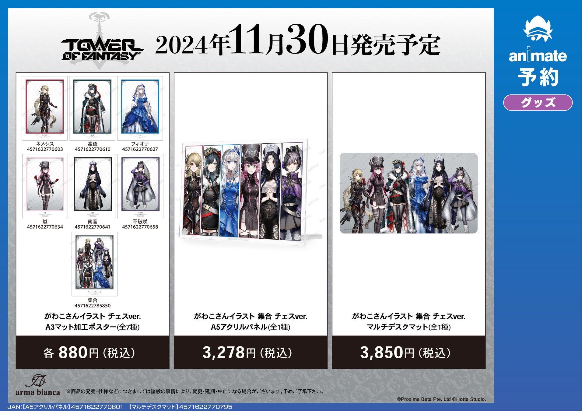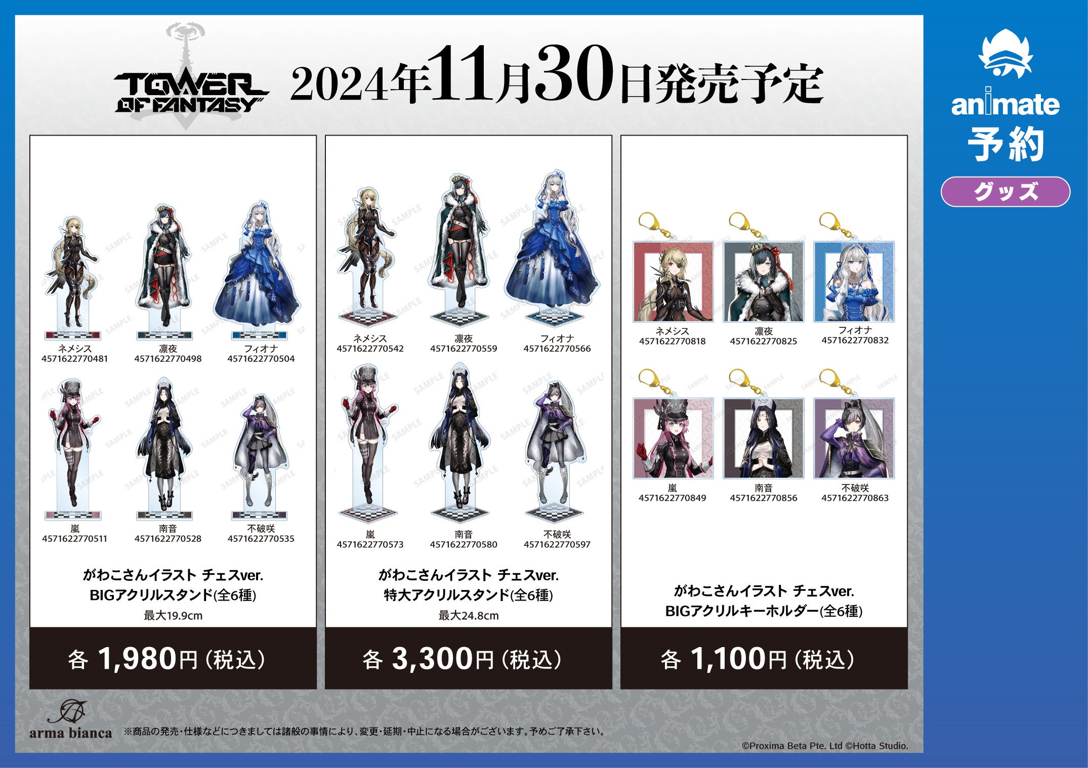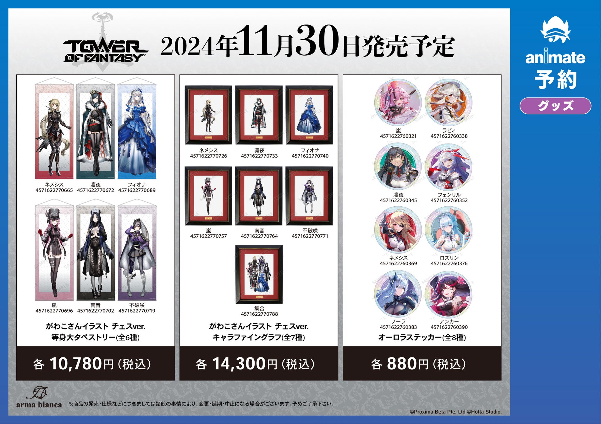 漫画・アニメのオリジナルグッズを販売する株式会社アルマビアンカ(本社:東京都中野区、代表取締役:坂井智成)は、この度、「『Tower of Fantasy(幻塔)』×がわこ アニメイトフェア」を実施いたします。